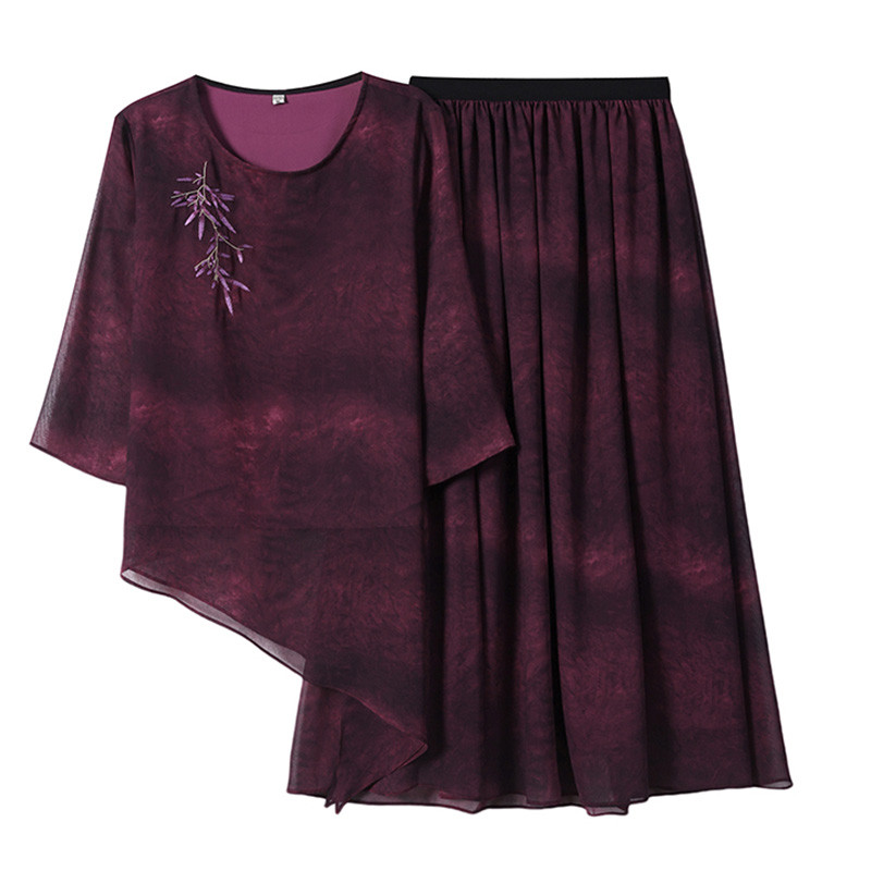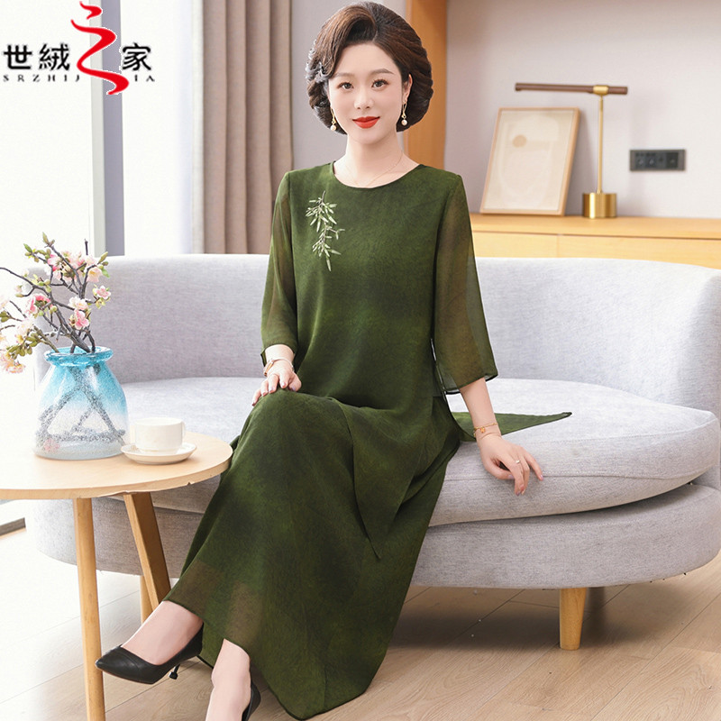 优雅气质修身 时尚 显瘦遮肉连衣 套裙新款 高货速发重磅真丝妈妈夏装