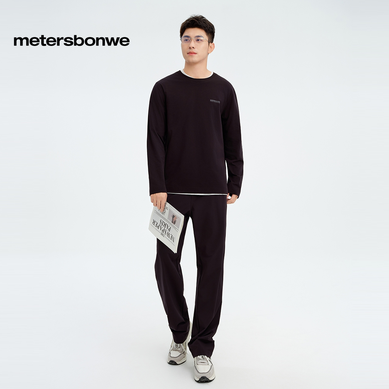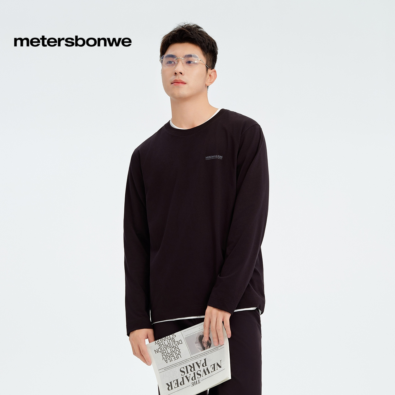通勤套头通勤字母图案长袖 新款 美特斯邦威男2025秋季 恤 商场同款