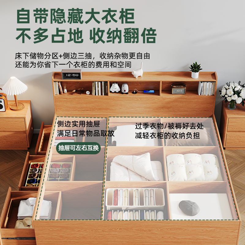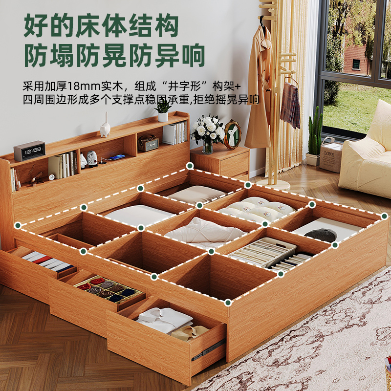 橡木定制全实木床高箱储物床18mm榻榻米2米加宽小户型主卧双人床