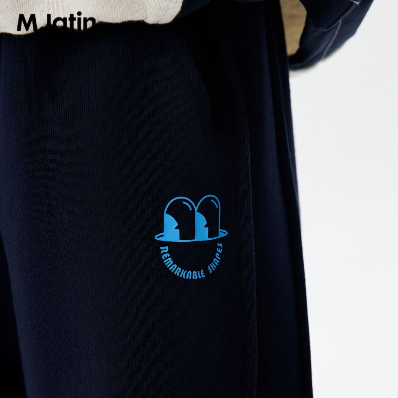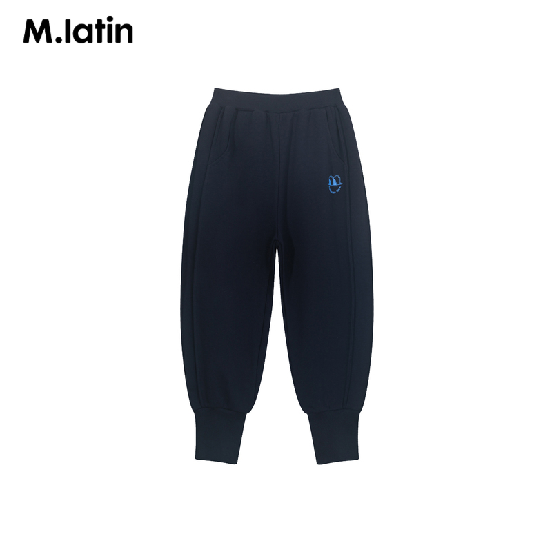宽松直筒阔腿运动裤 新款 子 女秋季 藏青色苹果刺绣高腰抽绳休闲卫裤