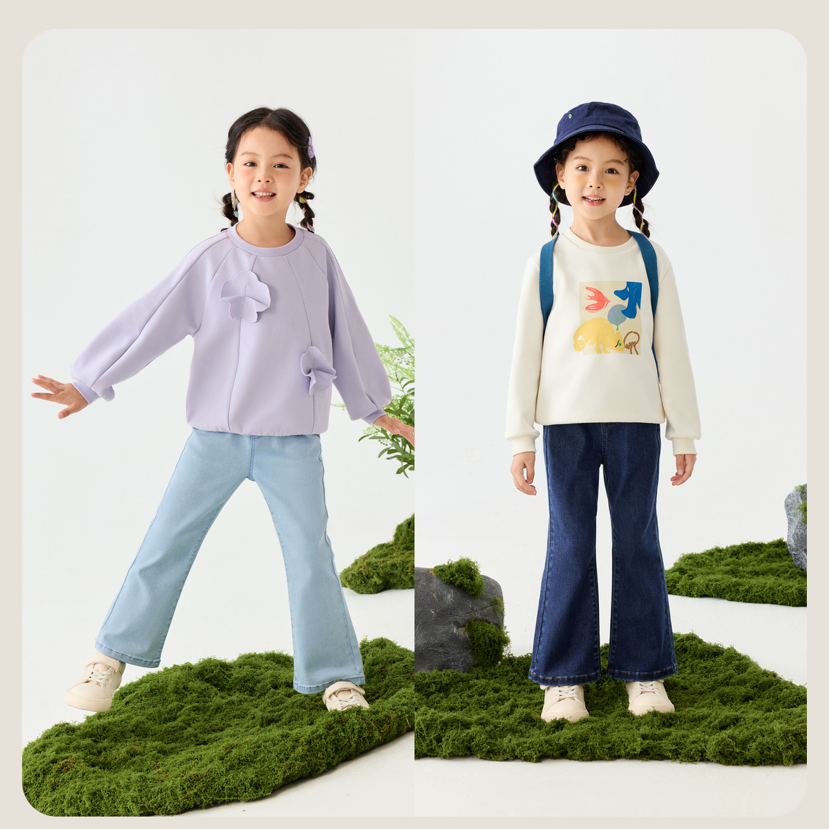 子2025春新品 迷你巴拉巴拉女童裤 宝宝甜美喇叭弹力长裤 软牛仔