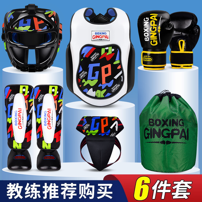儿童拳击散打护具全套自由搏击面罩头盔护胸腿裆男女泰拳训练实战