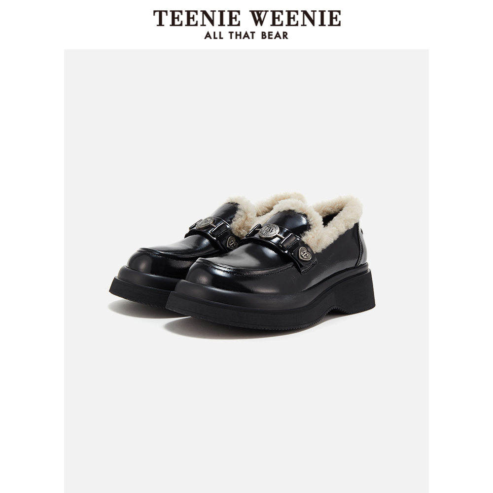 舒适女鞋 撞色拼接时尚 女冬季 TeenieWeenie小熊奥莱简约乐福鞋