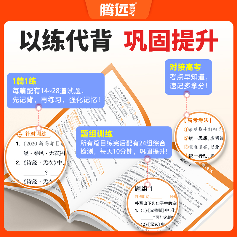 2025腾远高考高中必背古诗文72篇必备古诗词和文言文解题达人万唯新高考理解性默写高一高二高三教材必备文言文教材全解语文古诗词