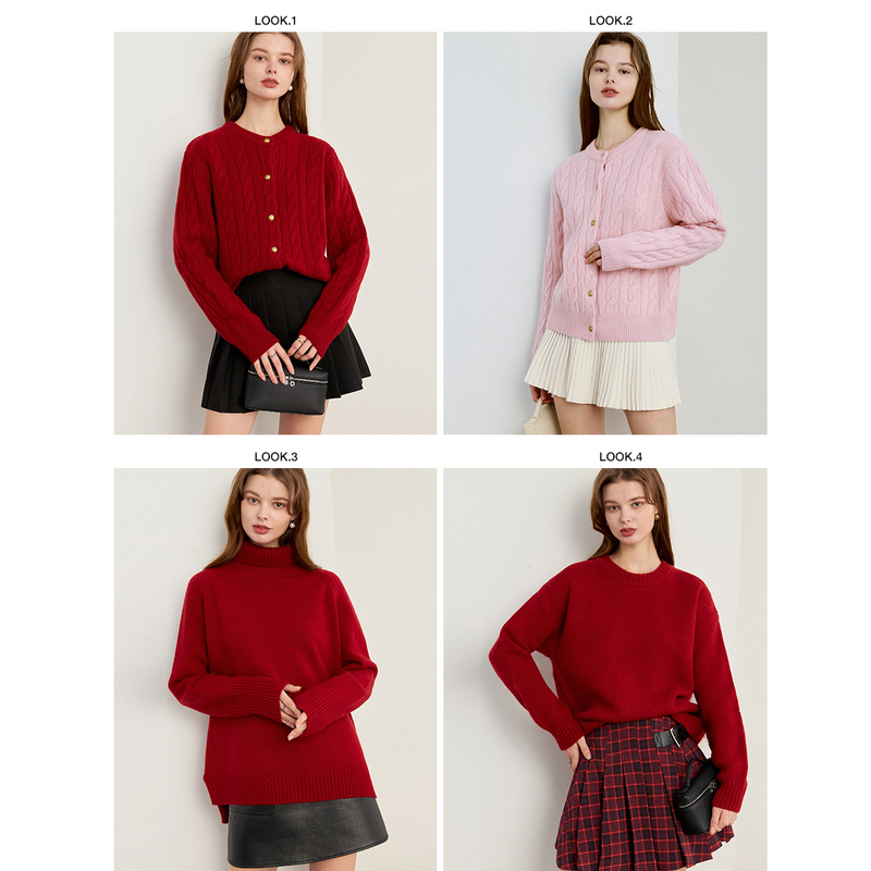 洋气外套上衣 红色毛衣女100羊毛独特好看针织衫 DPLAY2025秋季 新款
