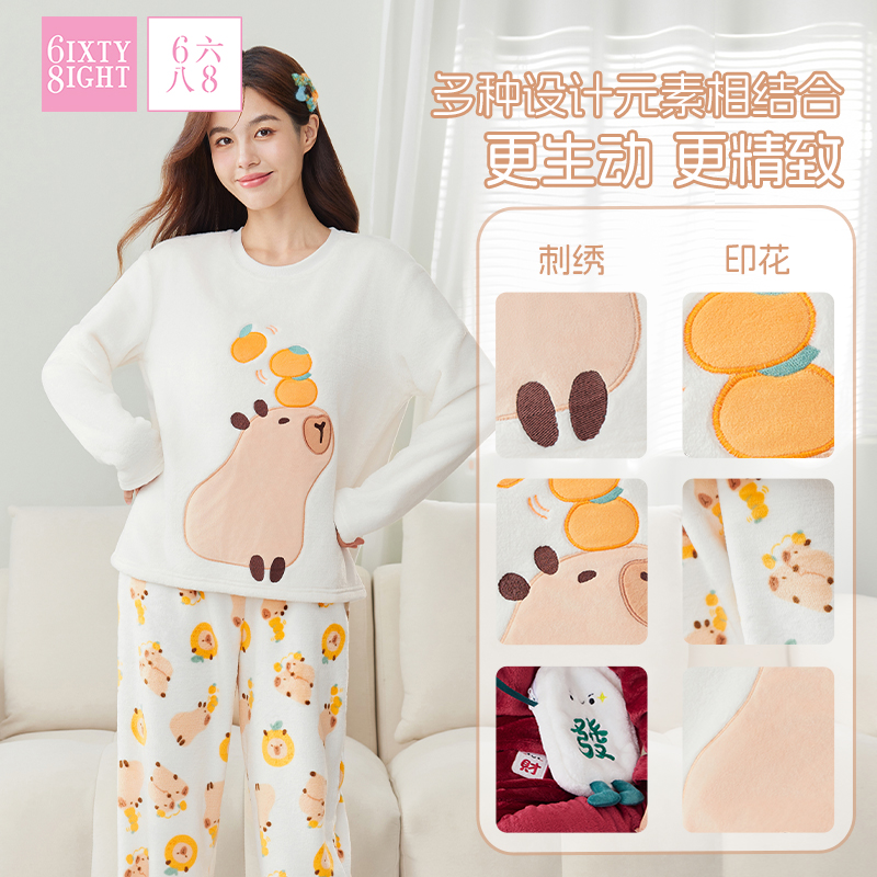 加厚大码 2023年新款 情侣家居服 珊瑚绒法兰绒暖暖套装 睡衣女秋冬季