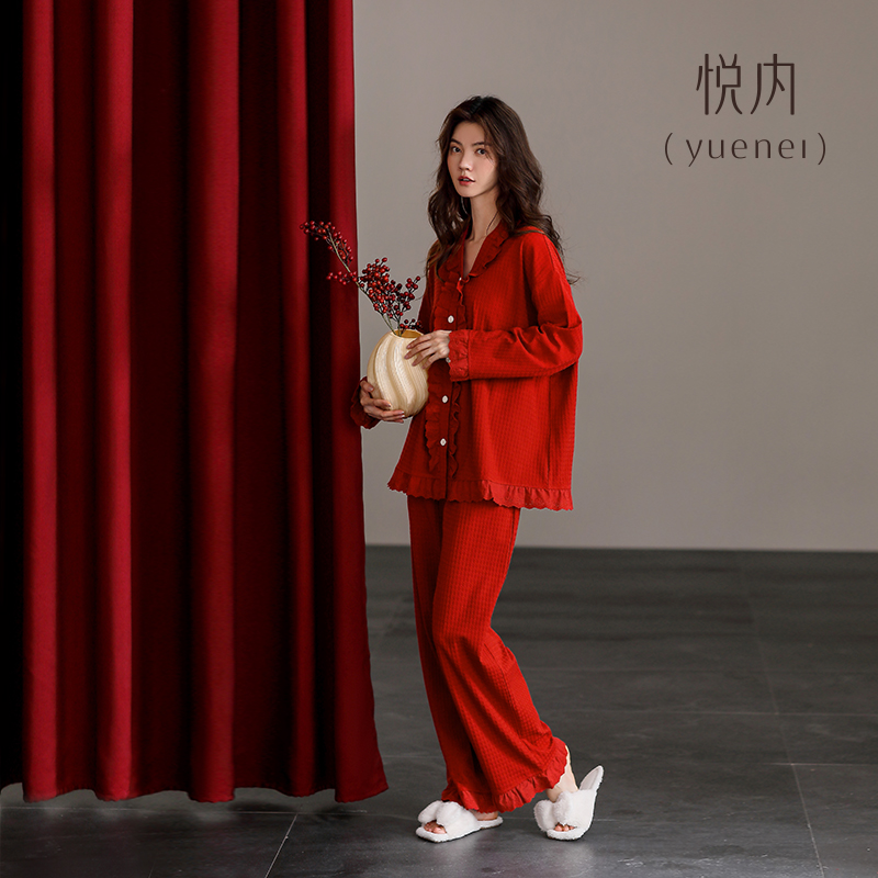 纯棉家居服红色本命年蛇年新婚结婚新年套装 悦内睡衣女春秋款 秋季