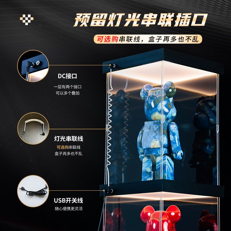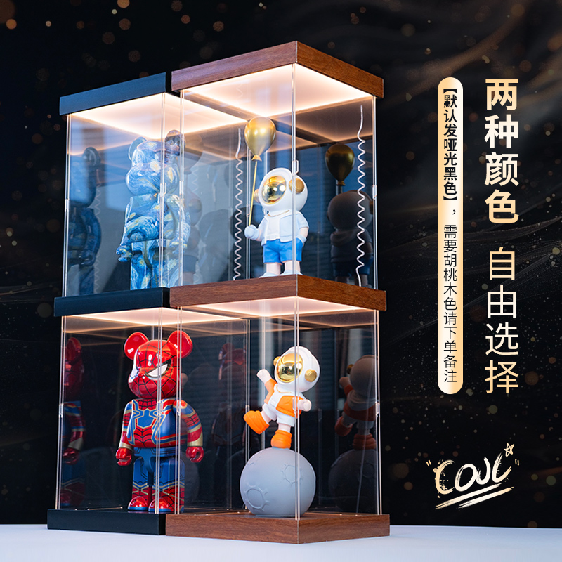 适用高达泡泡玛特模型积木免胶可定制亚克力带灯光灯箱防尘展示盒