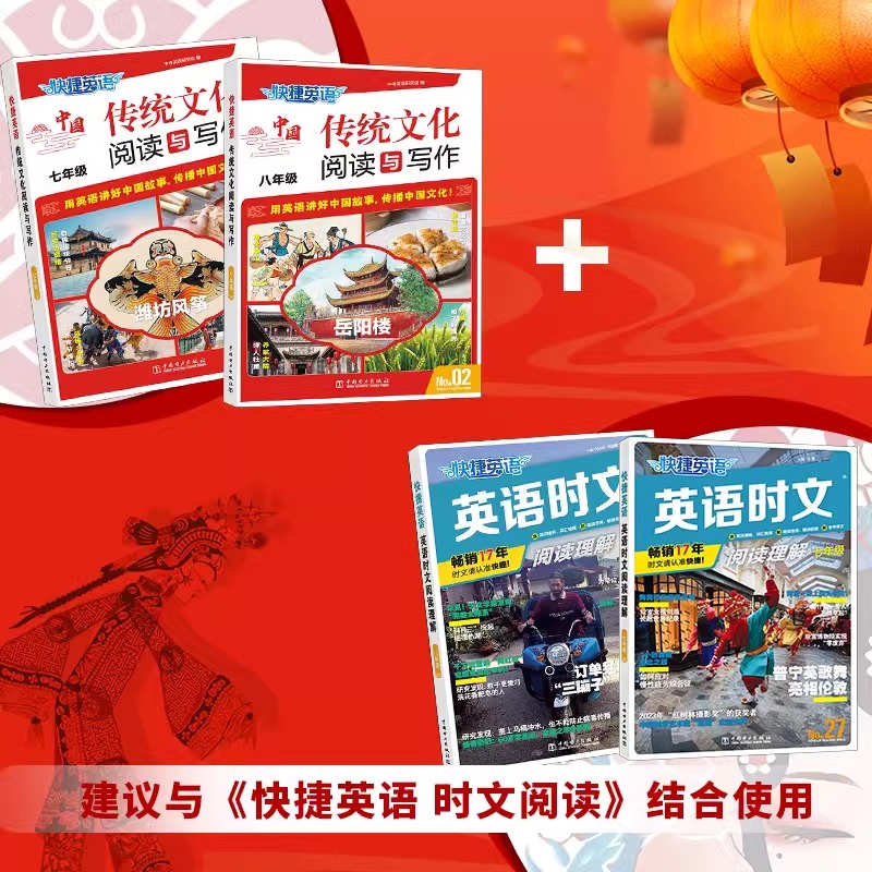 新版 快捷英语传统文化阅读与写作七八九年级中考小升初第2期初中英语时文阅读完形填空专项训练任务型书面表达故事