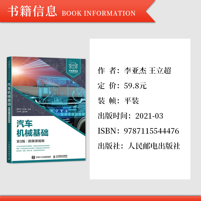王立chao 9787115544476 汽车机械基础 社 人民邮电出版 著 李亚杰 附微课视频 第3版 直发