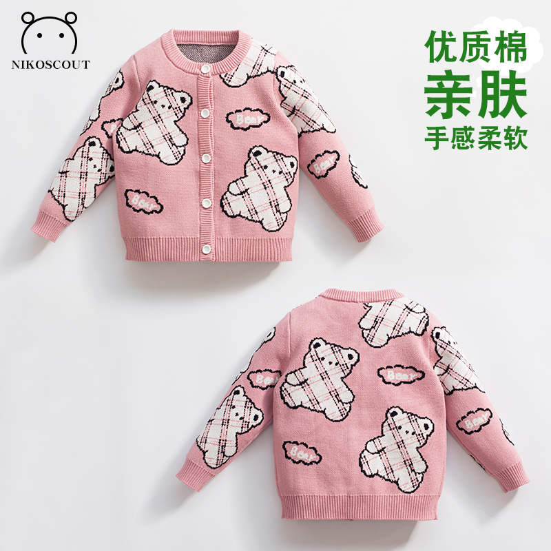 毛衣春秋高端纯棉粉色韩版 洋气秋冬开衫 小外套 母女装 清仓亲子装