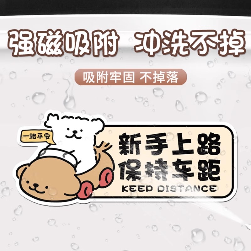 新手上路线条狗实习贴创意车贴磁性反光贴汽车贴纸可爱女司机提示