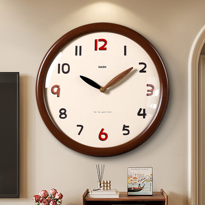 中古风挂钟轻奢高级感时钟2025新款 简约现代客厅家用免打孔挂墙表