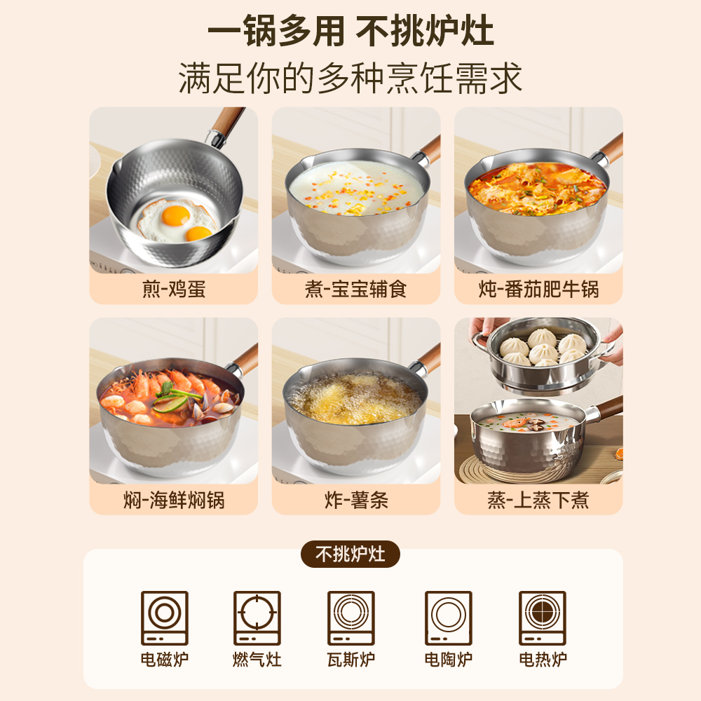 康巴赫雪平锅316不锈钢食品级奶锅煮泡面锅一人食小锅牛奶锅汤锅