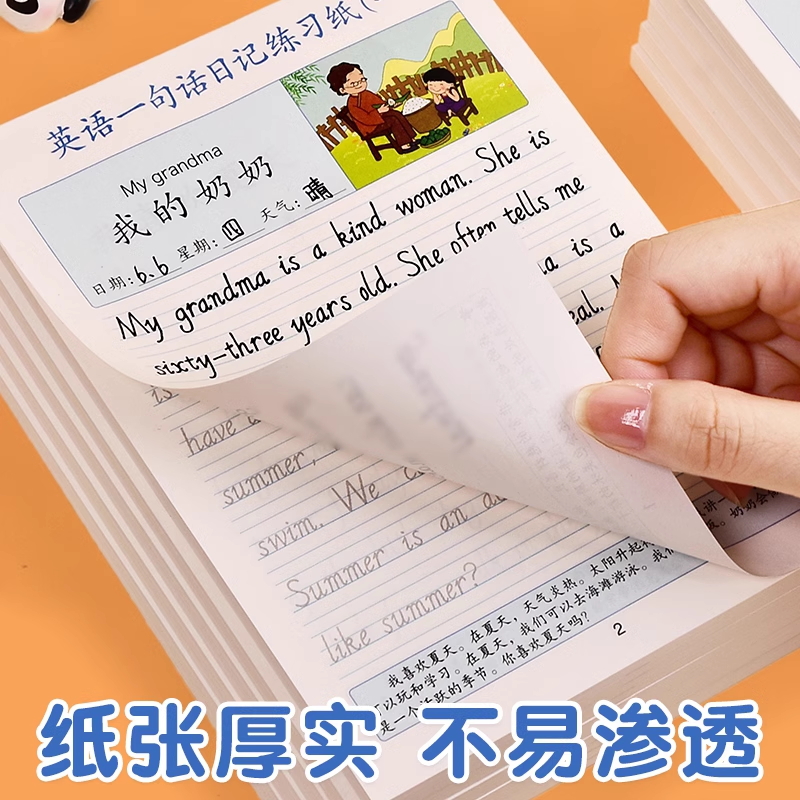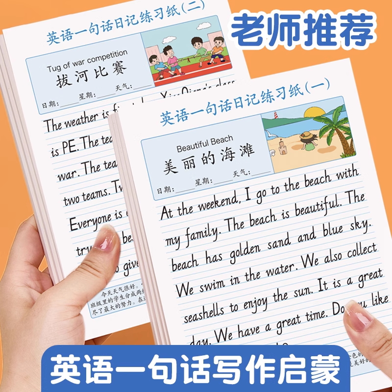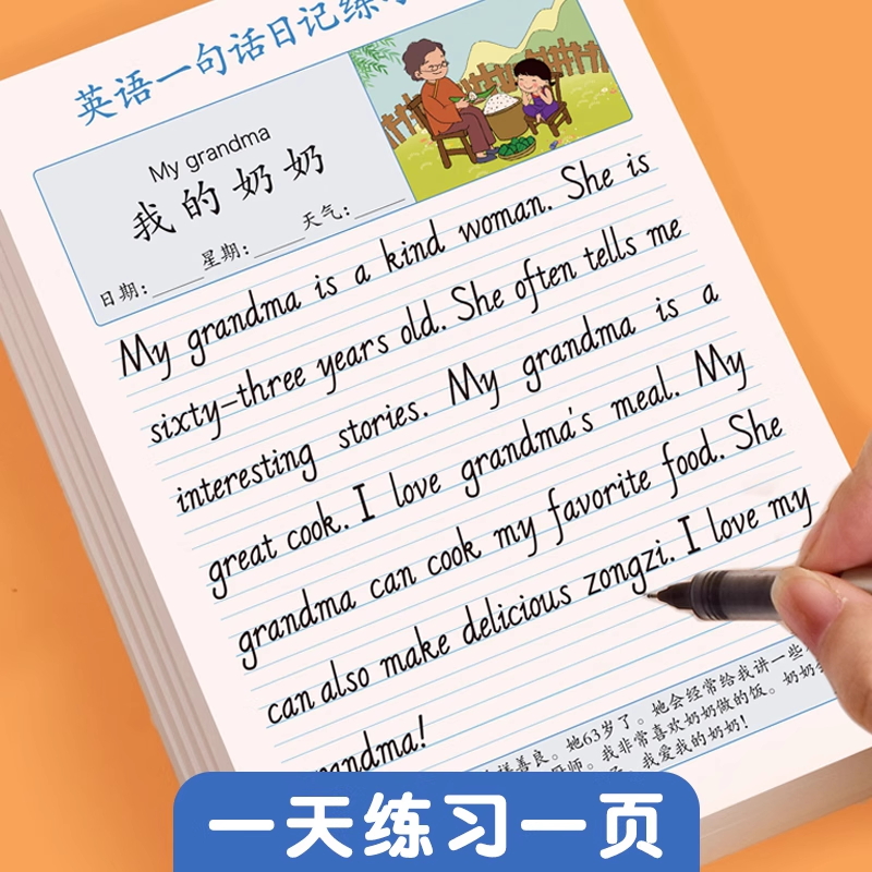 一句话日记衡水体英语字帖小学生专用看图写话英语作文示范大全描红本练习纸三四五六年级通用英语作文练字帖每日一练