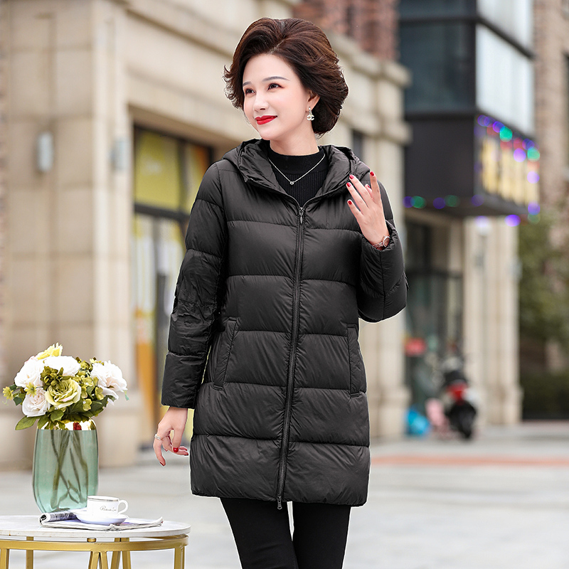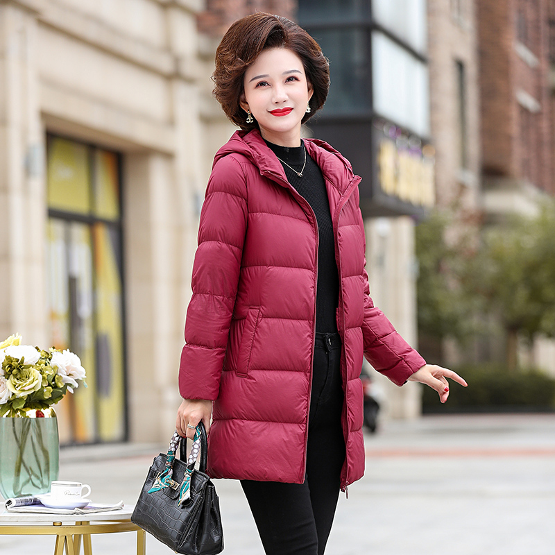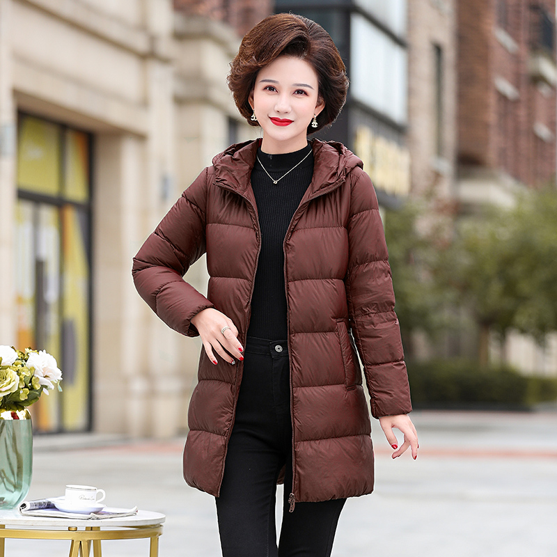 连帽中老年冬加厚面包外套洋气轻便 中长款 新款 羽绒服女年轻妈妈装