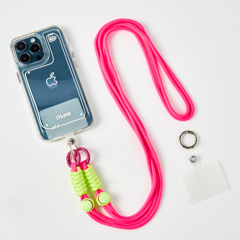 手机壳挂绳挂脖可拆卸配件斜跨手工编织防丢绳固定卡片夹片贴片背包背带斜挂防摔钥匙玫红女时尚 潮流