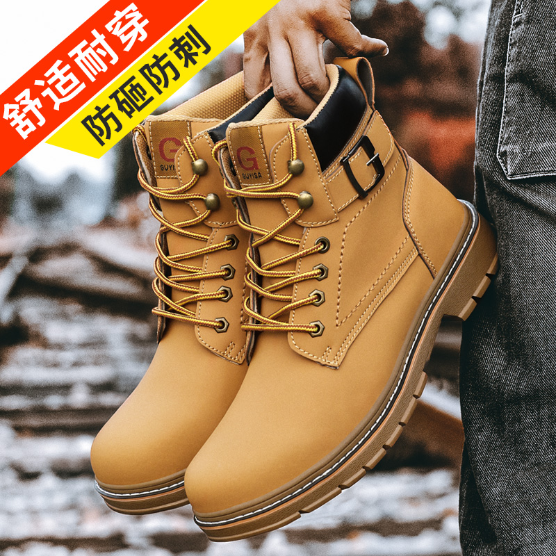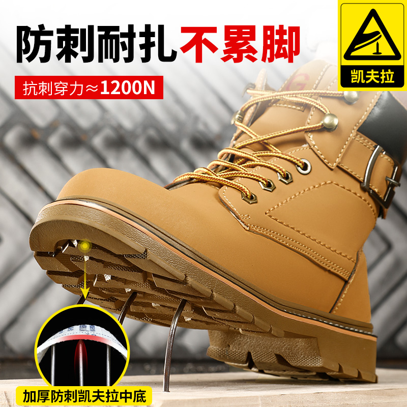 工地透气工作老保轻便鞋 高帮防砸防刺穿带钢板钢头夏季 男款 劳保鞋