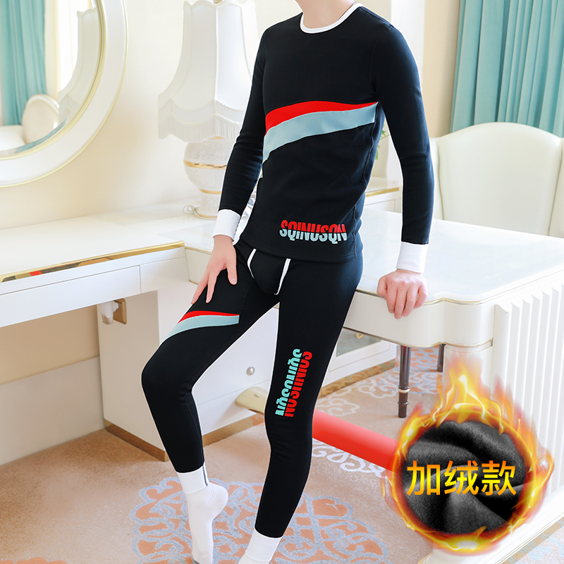 加厚加绒棉质毛衫 线衣线裤 防寒打底秋衣秋裤 冬季 套装 保暖内衣男士