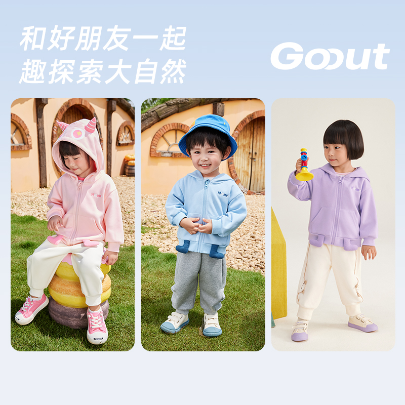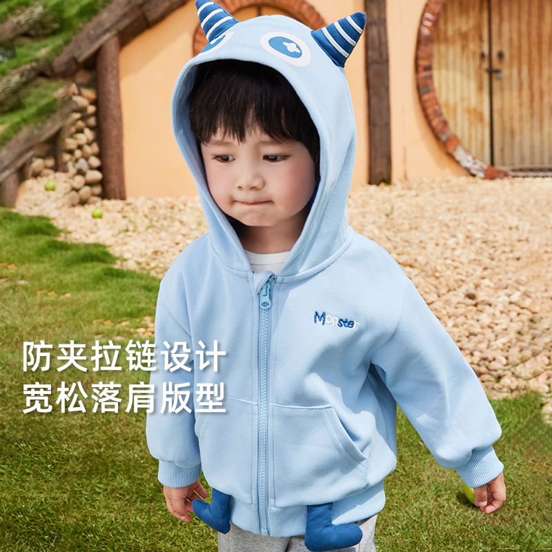 萌趣怪兽上衣男童秋装 儿童连帽外套女童秋季 宝宝可爱衣服 5A抑菌