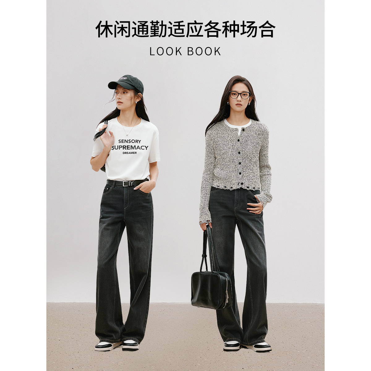 百搭直筒宽松阔腿弹力裤 2025新款 子MS 男秋冬季 班尼路SK高端牛仔裤