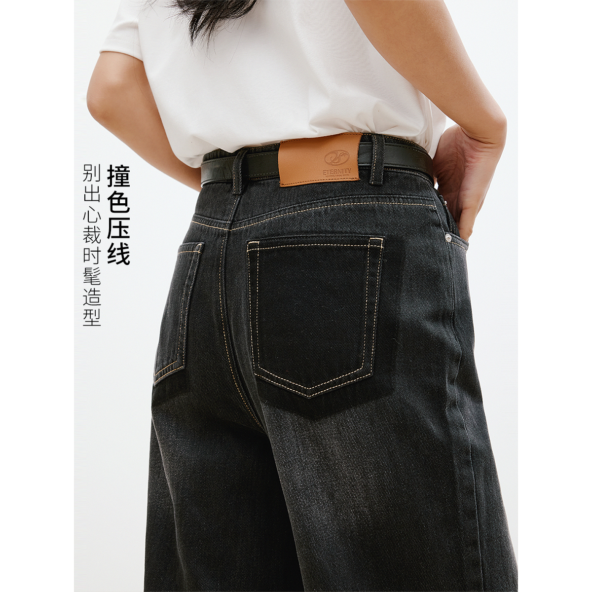 复古高腰宽松显瘦垂感直筒拖地裤 阔腿牛仔裤 秋款 爆款 子 女2025新款