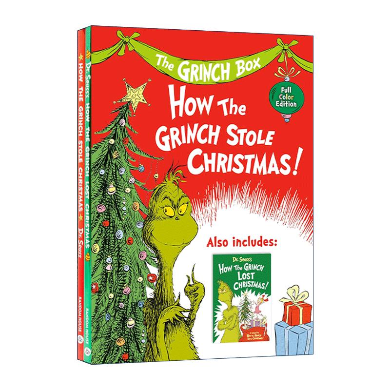 儿童经典 Grinch Boxed Book 英文原版 圣诞怪杰两册精装 圣诞怪杰如何偷走圣诞节 绘本 苏斯博士 Two 套装 盒装 英文版 Set The