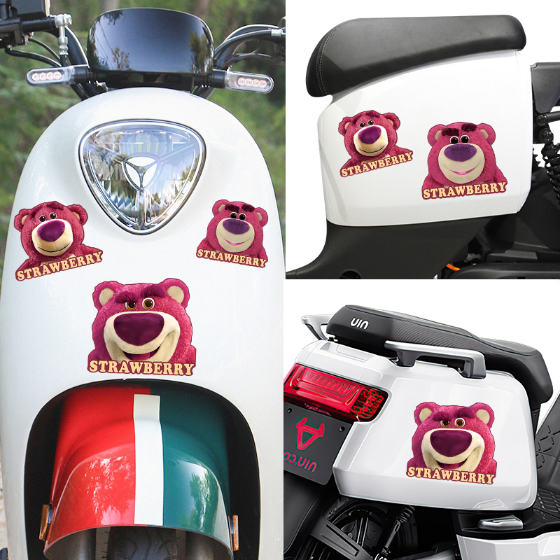 草莓熊车贴车身拉花汽车划痕遮挡电动车贴纸摩托车装 饰防水反光贴