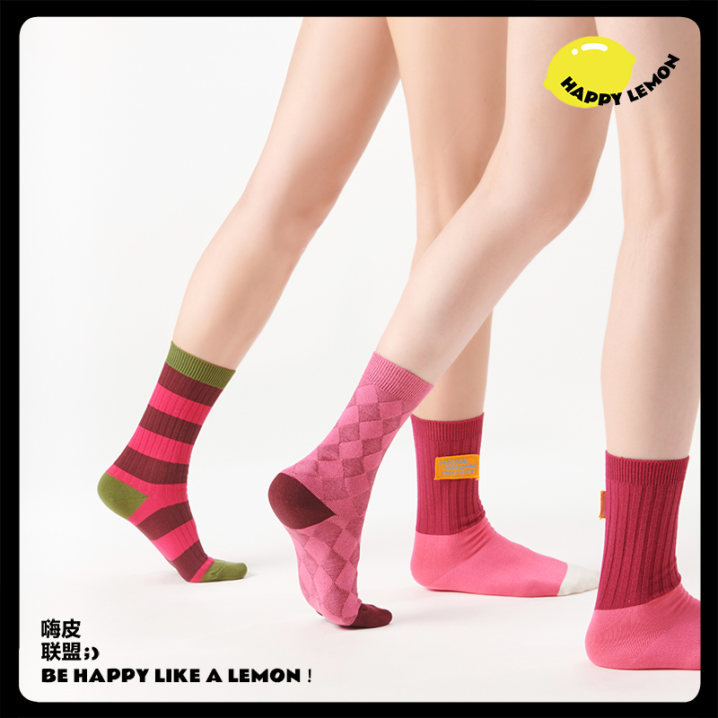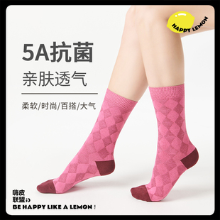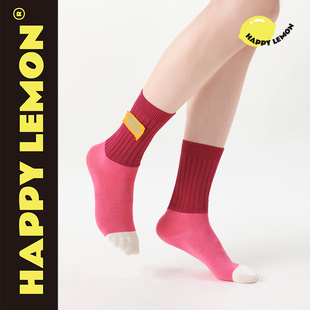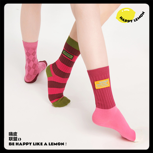 HAPPYLEMON袜子女中筒袜春秋款 ins潮外穿可爱字母条纹秋冬长棉袜