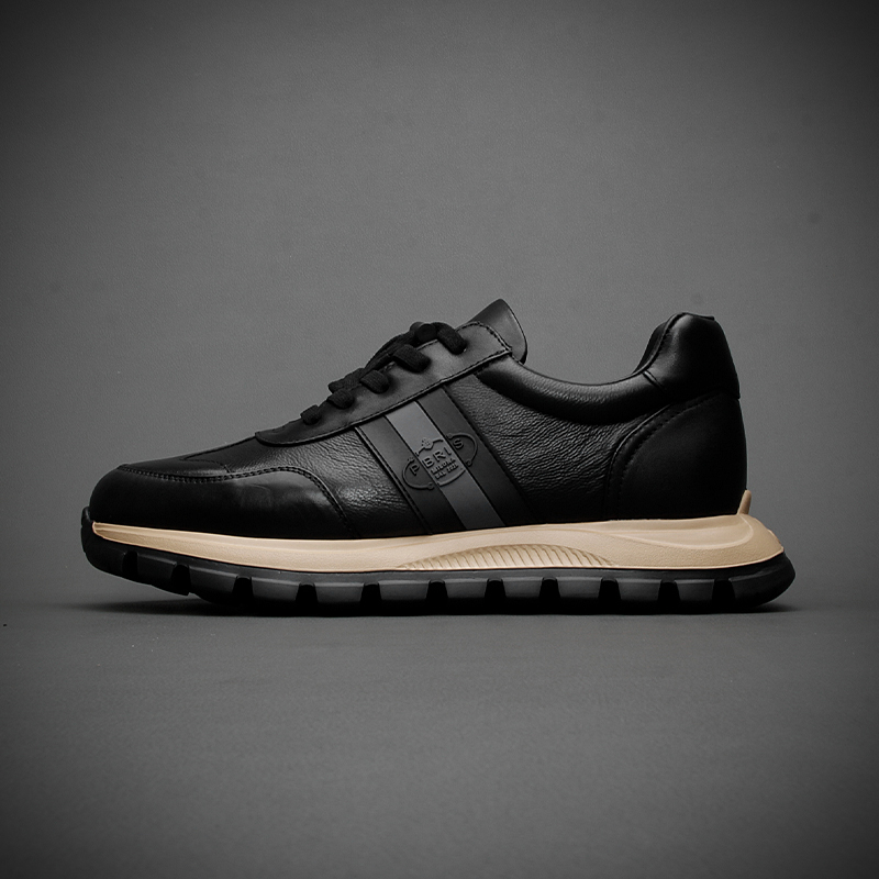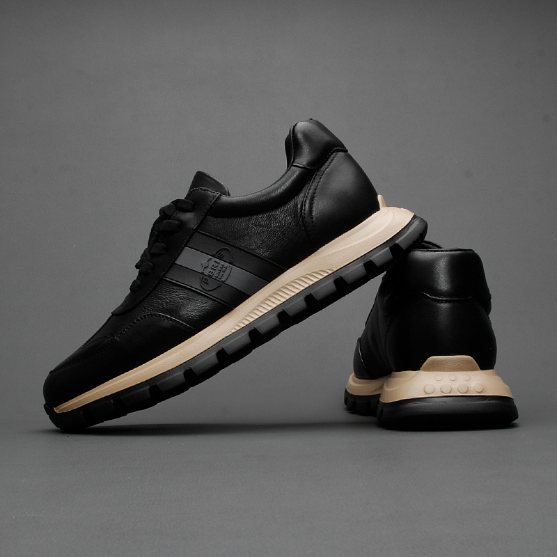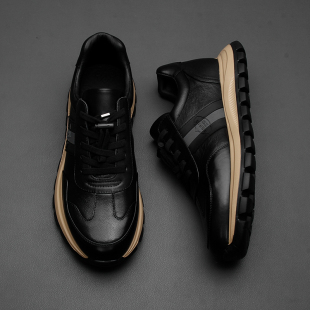 黑底轻便休闲跑步鞋 真皮运动皮鞋 新款 2024秋季 男全牛皮欧洲站男鞋
