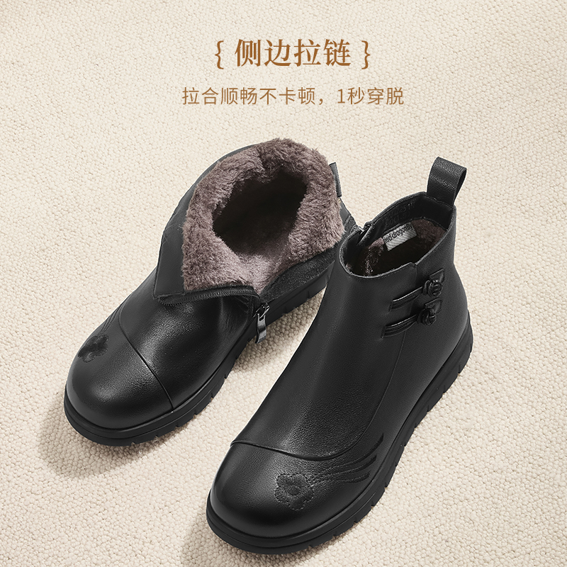 百丽复古时装 加绒显瘦厚底粗高跟短靴子E5S1DDD5预 超软羊皮靴新款