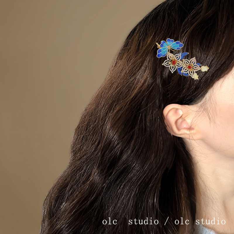国风花朵侧边夹旗袍汉服配饰旅行发卡 古典发夹 鬓边海棠 新中式