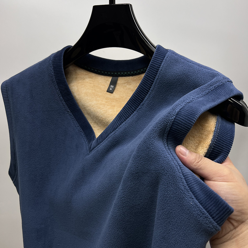背心男坎肩打底抓绒衣 加绒加厚无袖 摇粒绒V领马甲男秋冬季 爸爸装