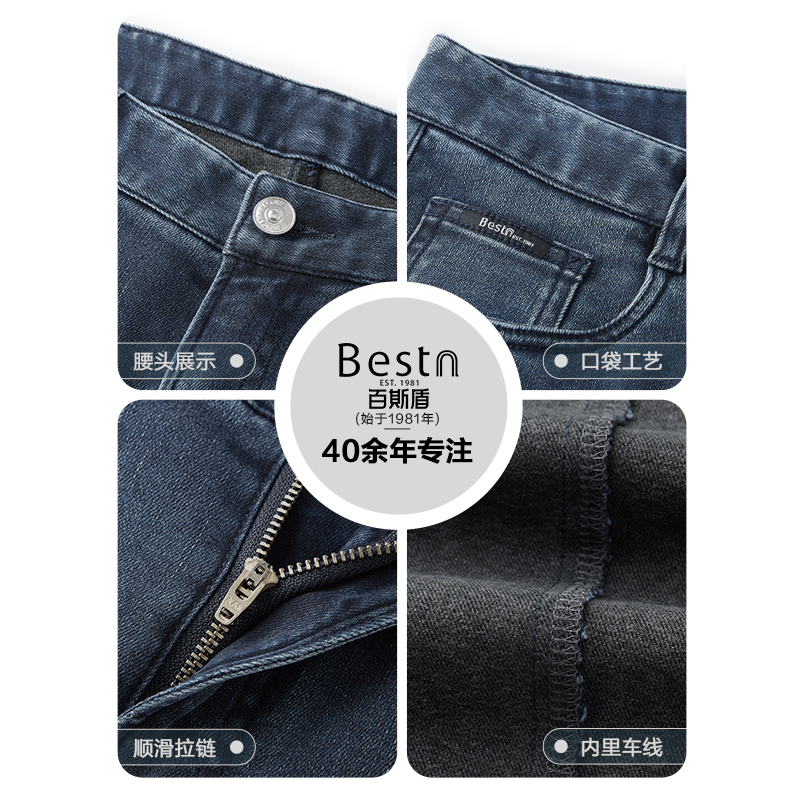 牛仔裤 百斯盾官方男装 2025秋季 新款 舒弹保暖小直筒裤 修身 底抓毛