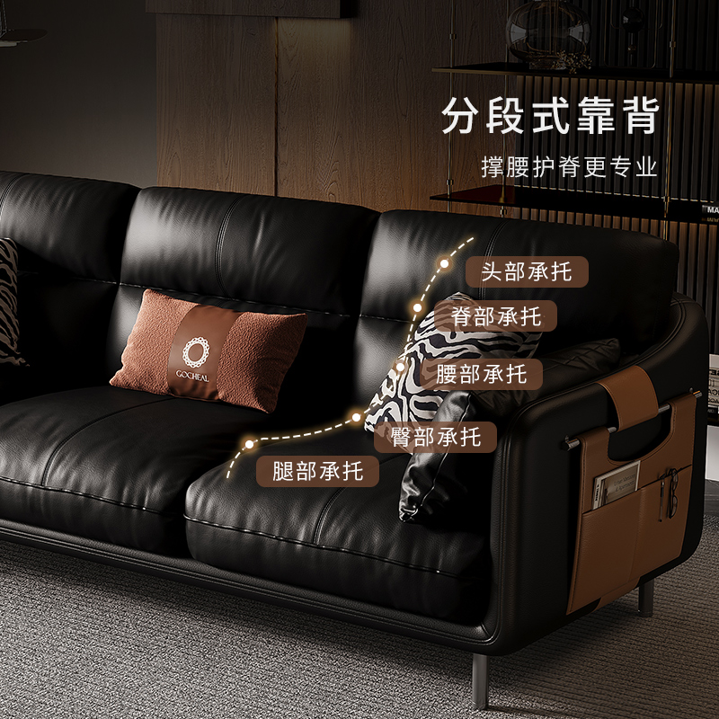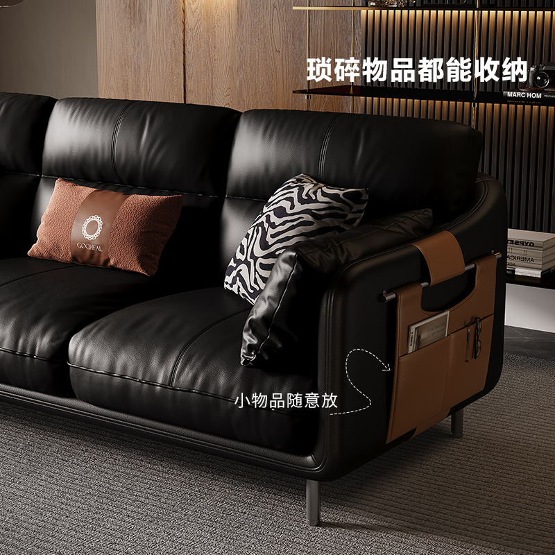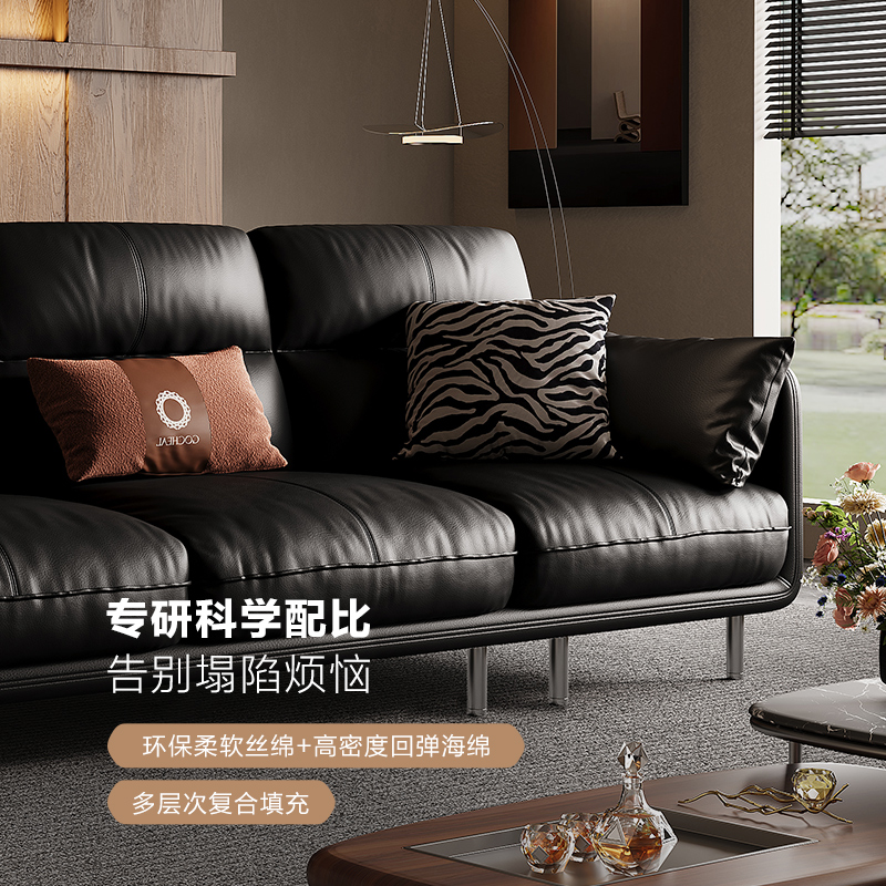 政府补贴中古真皮沙发黑色法式 复古风小户型高脚直排2025年新款