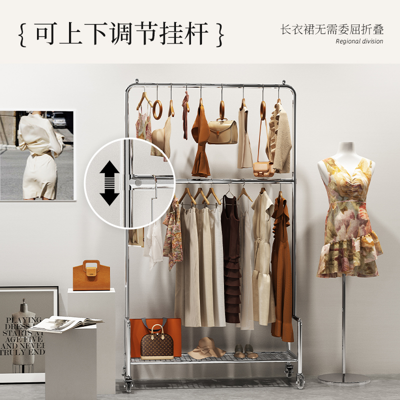 服装 店专用货架 店展示架试衣间陈列架移动双层落地挂衣架网红女装