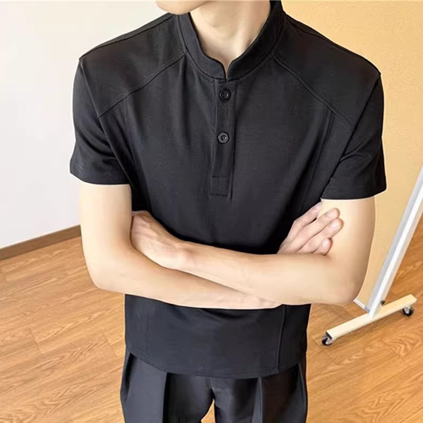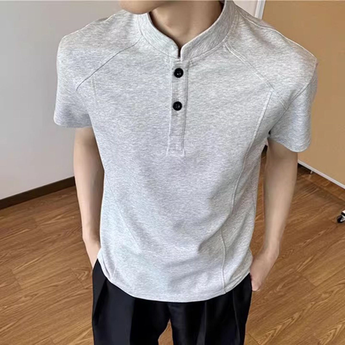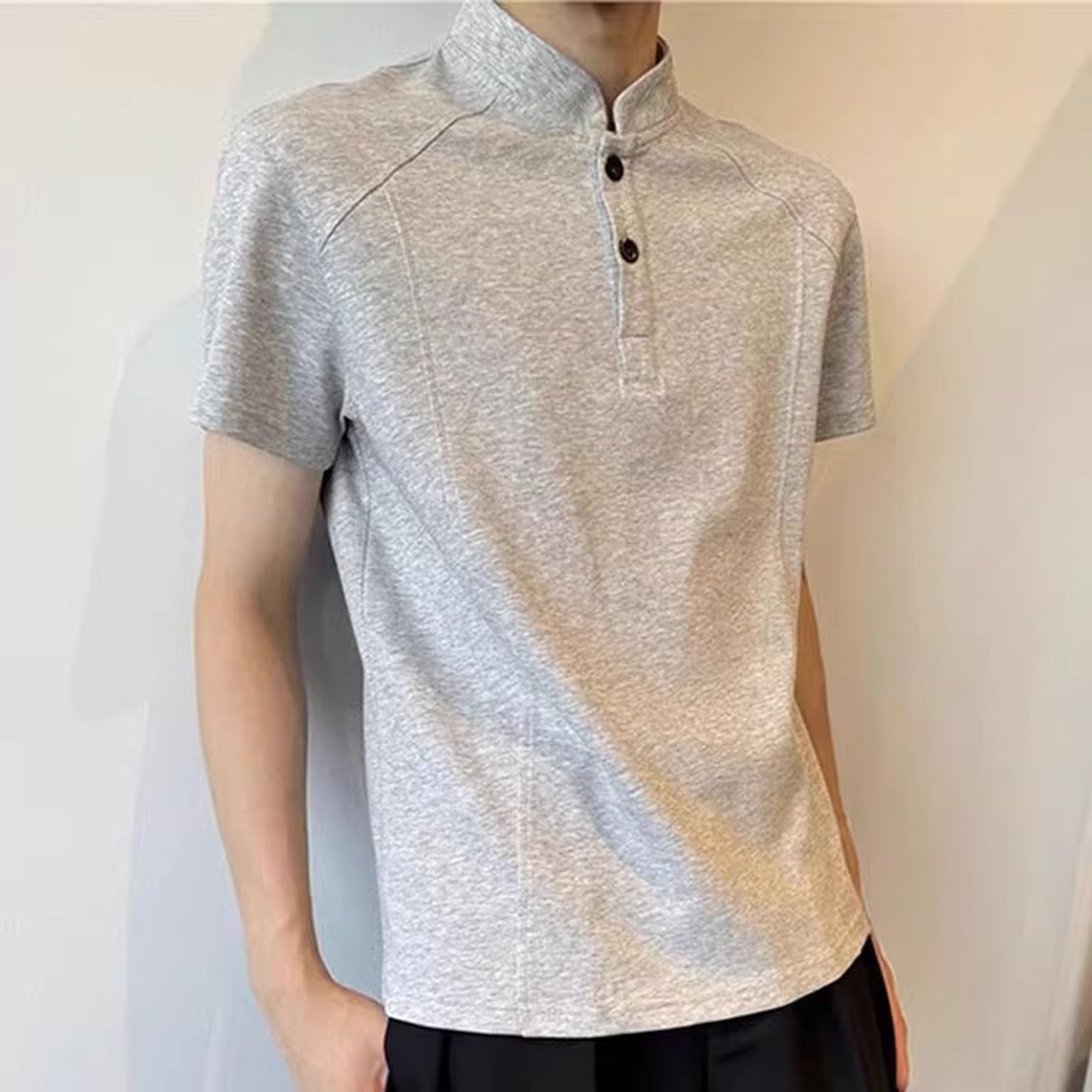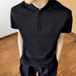 复古亨利领t恤男夏季 半袖 硬汉穿搭修身 潮牌小领口短款 打底衫 美式