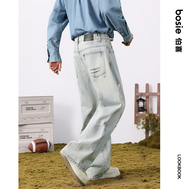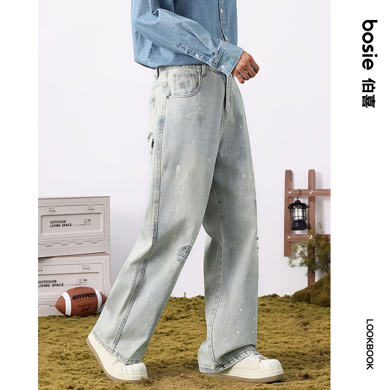 男女秋潮牌休闲裤 江南先生NewJNXS水洗直筒牛仔裤 敖瑞鹏同款