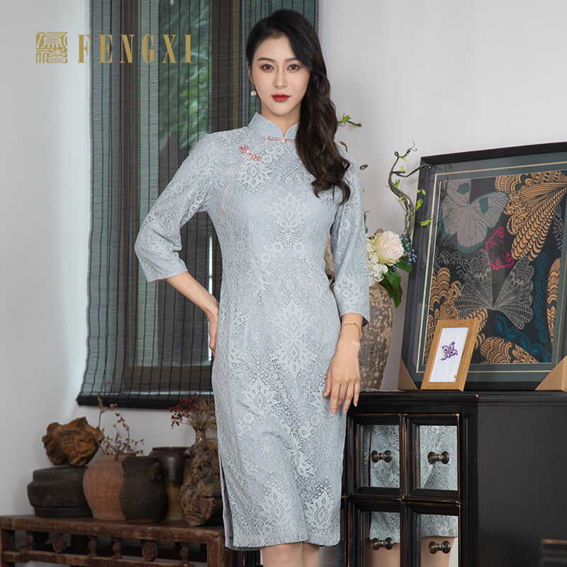 日常气质 蕾丝面年轻中长款 凤禧2025年春秋新款 旗袍改良女士九分袖