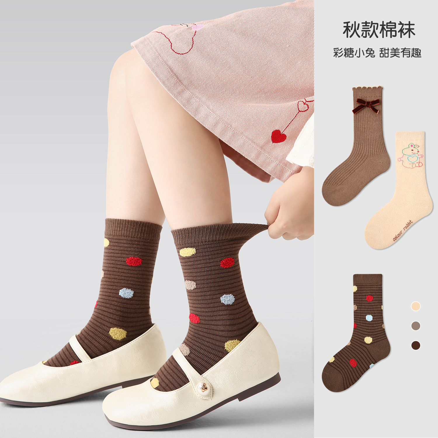 ins潮复古花边公主袜 韩版 女童袜子春秋款 纯棉波点中筒袜儿童秋季