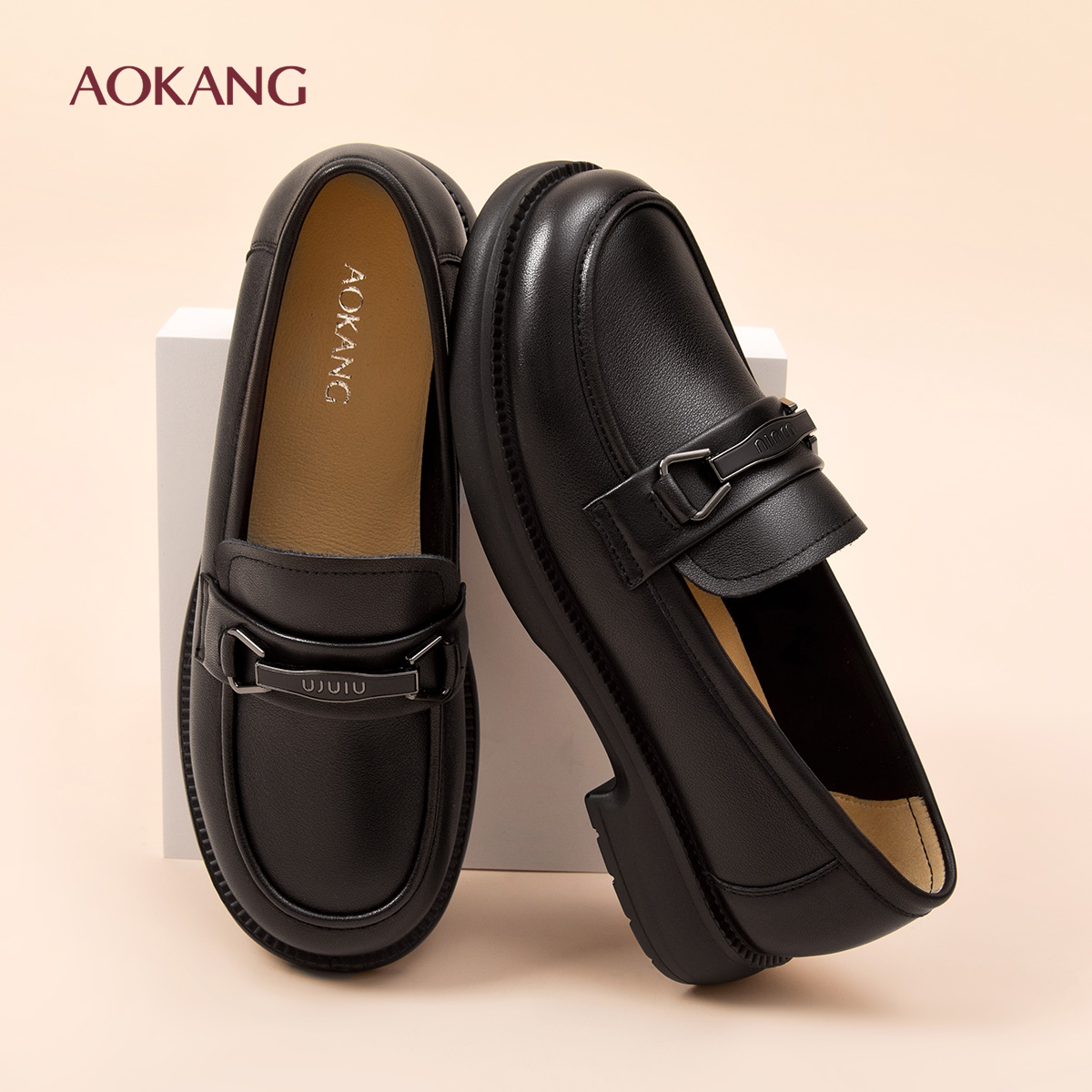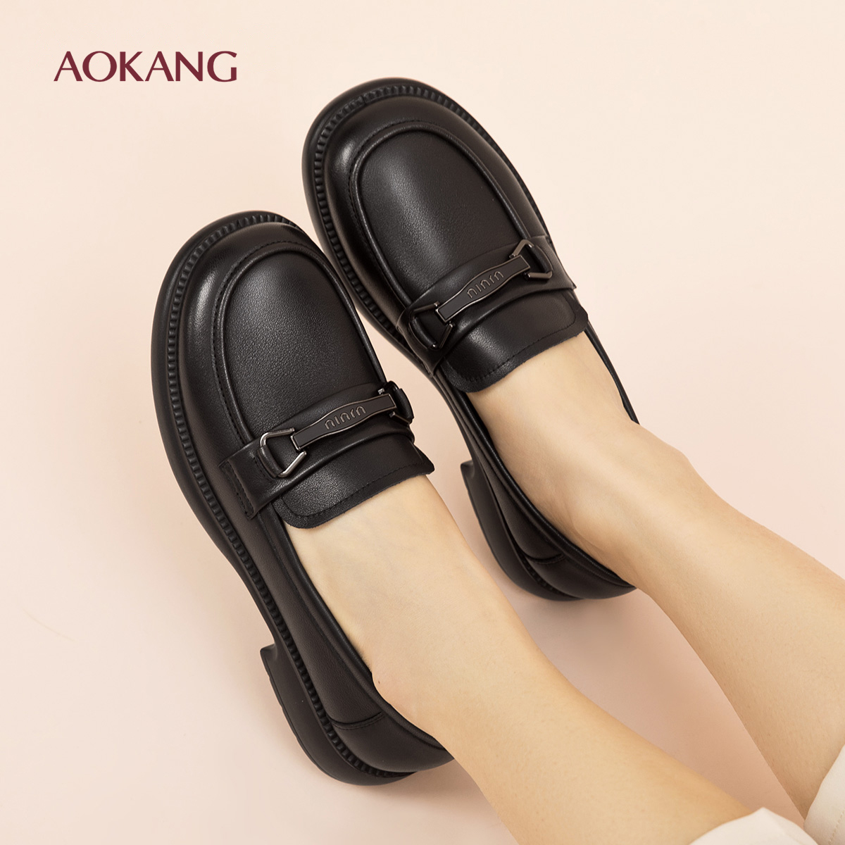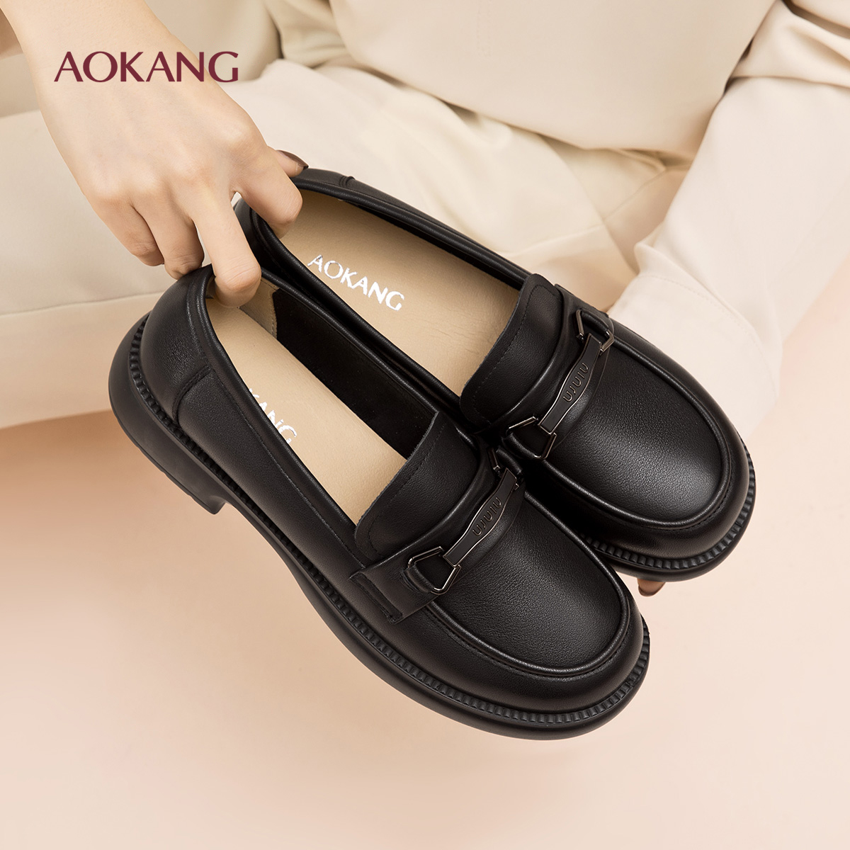 新款 2025秋季 时尚 百搭乐福鞋 奥康 粗跟舒适浅口单鞋 女鞋
