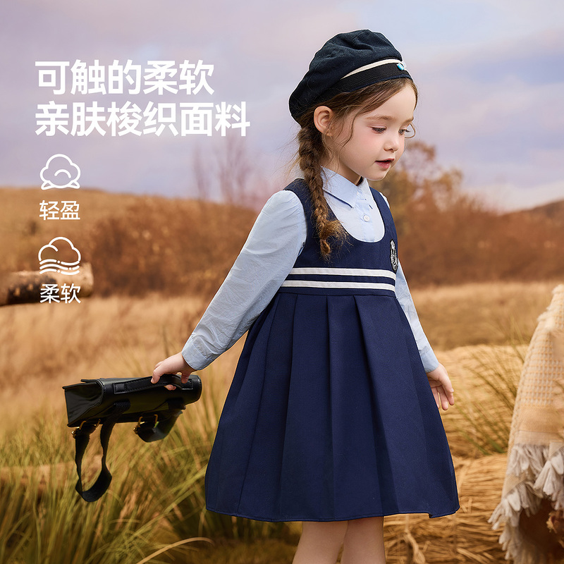 ASK女童连衣裙2025新款 洋气裙子潮 儿童学院风公主裙女宝宝春秋款