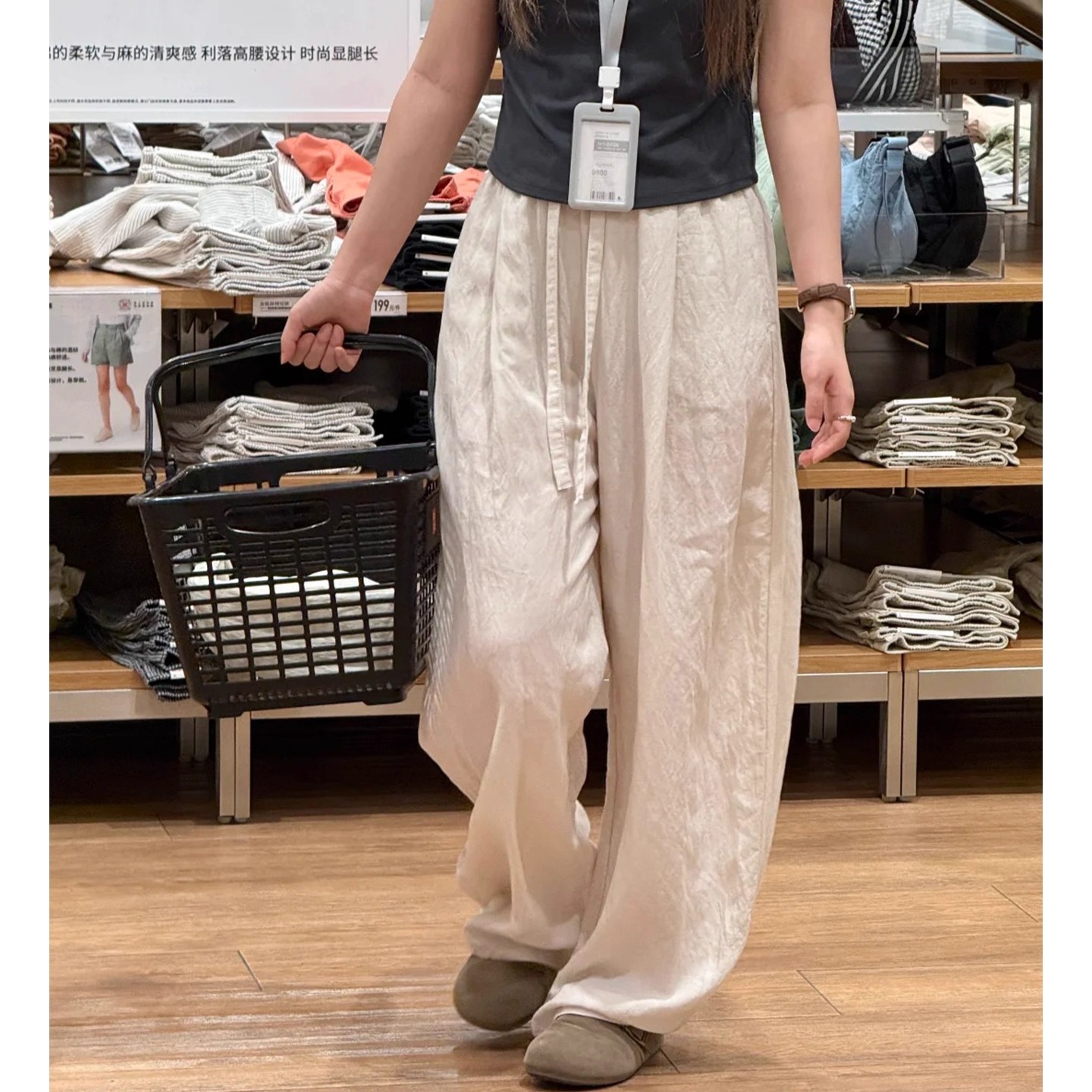 小个子高腰显瘦冰丝速干防晒亚麻裤 2025新款 女夏季 天丝棉麻阔腿裤