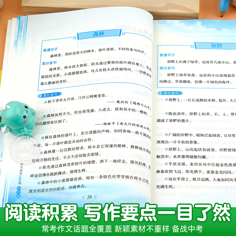 作文金句1000例初中生好词好句好段素材积累作文金句一千句子段落积累大全初中一初二初三七八九年级语文写作技巧方法范文正版 书籍