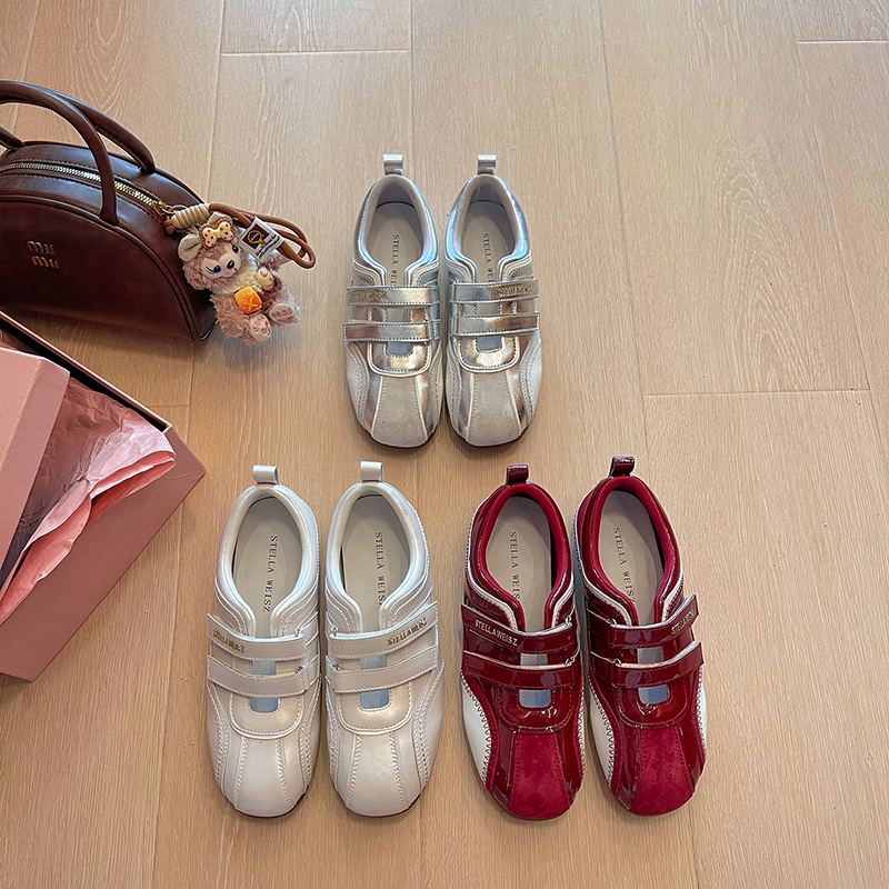 魔术贴运动休闲玛丽珍银色单鞋 韩版 新款 女2025秋季 芭蕾德训鞋