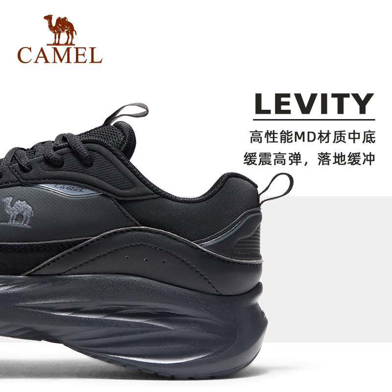 黑色皮面防泼水轻便减震网面跑步鞋 男秋冬新款 子 运动鞋 特步羽逸