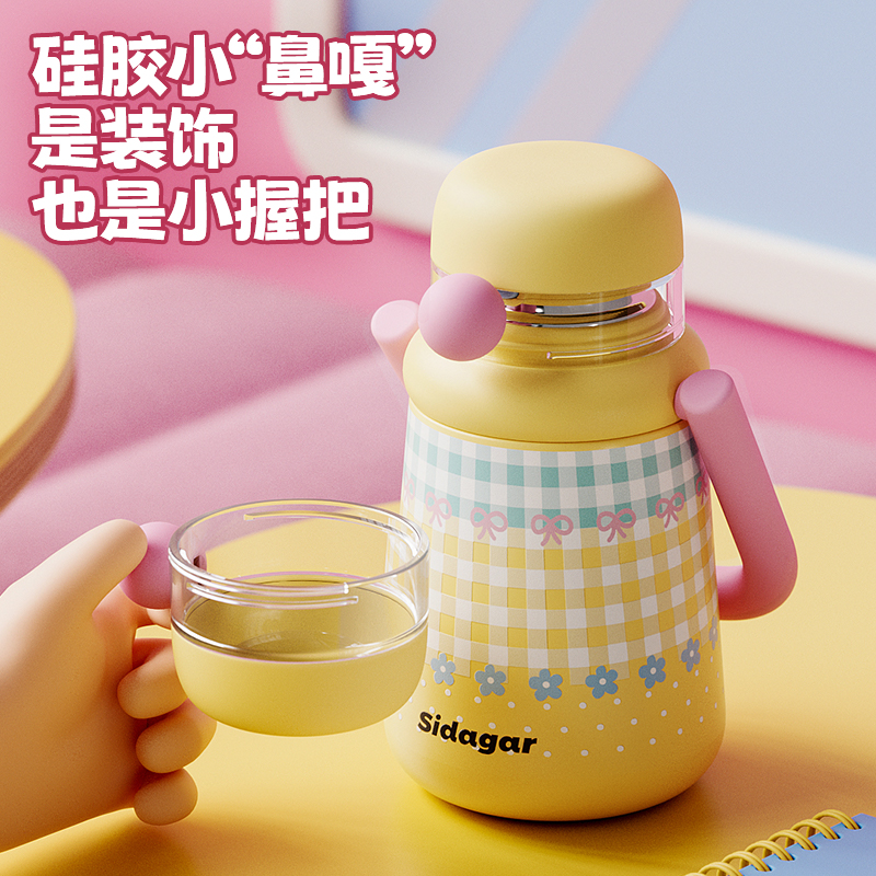 世大家大容量保温杯女2025新款 杯子高颜值学生上学便携吸管水杯
