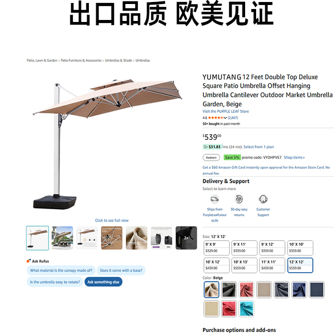 户外遮阳伞庭院伞墙壁伸缩伞阳台太阳能壁挂边柱伞商用室外太阳伞