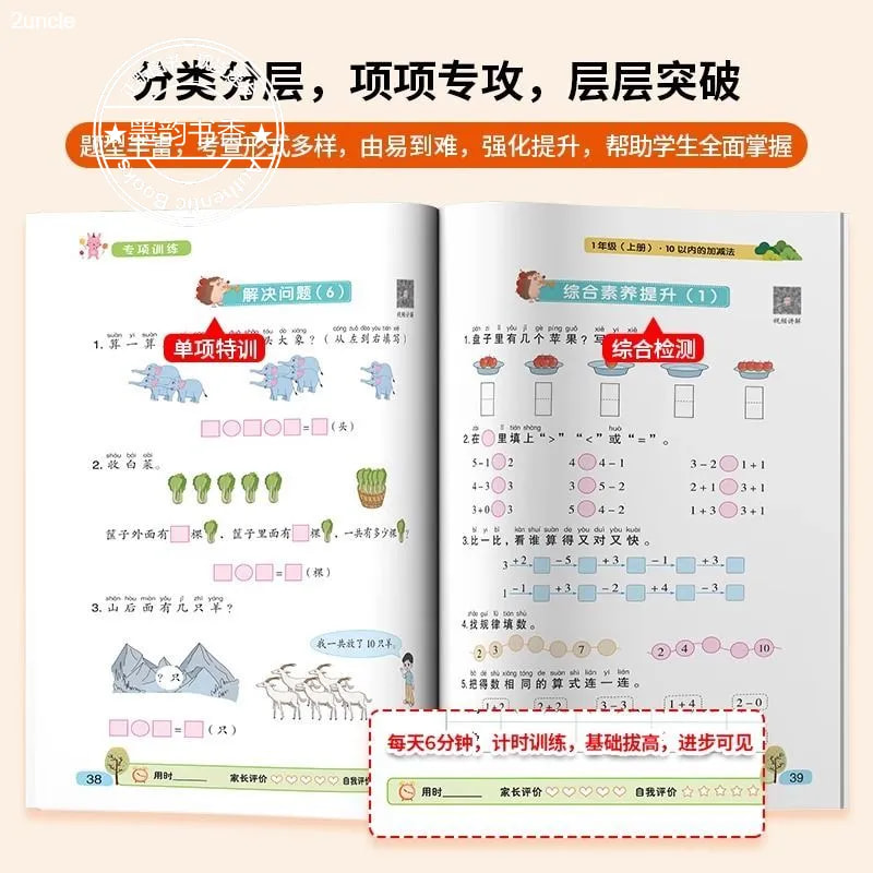 一二三四五六年级语文数学专项同步训练上下册同步练习册每日6分钟人教版 阅读理解句子训练字词看拼音写字词近手册课堂内容配套
