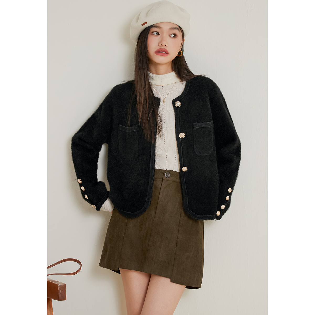 歌莉娅针织抓绒半身裙女秋冬流行穿搭高腰黑色包臀裙子1BSJ2D020